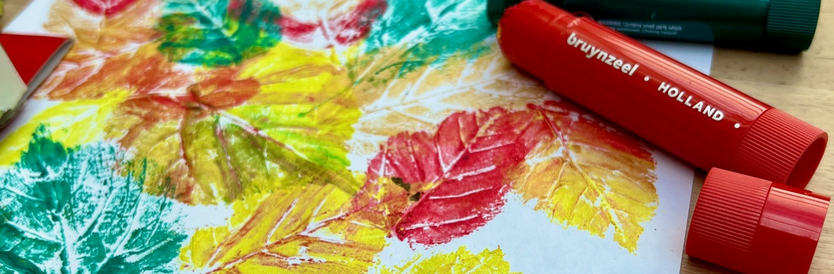 De bladeren vallen weer van de bomen. Een goed moment om deze knutseltip te proberen. Zoek de mooiste (van de boom gevallen) bladeren, verf ze met de super handige verfsticks en stempelen maar! Stempel jij van klein naar groot, in de vorm van de eerste letter van je naam, of gewoon overal?