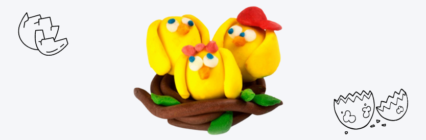 Deze vrolijke kuikens zijn een feest om te maken. Kneed de super zachte klei van Creall tot de schattige kuikentjes en zet ze in hun vogelnestje. Het kneden van de klei en het maken van dit knutselwerkje is goed voor de fijne motoriek van je kind.