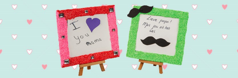 Een mooi versierd lijstje op een mini-schildersezeltje om je moederdag- of vaderdagboodschap te etaleren. Dat krijgt ongetwijfeld een ereplekje in huis!