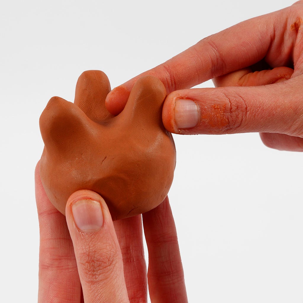 Reageer op RegineHoi Regine, Je kan met een bakje water naast het kleiwerkstuk werken. Steeds de klei wat nat maken met de vingers. De klei kun je op die manier elastisch houden. Het werkstuk droogt aan de lucht, wil je tussendoor een rust moment (dag), dan het werkstuk luchtdicht wegzetten. (plastic zak erom en knoop in de zak)