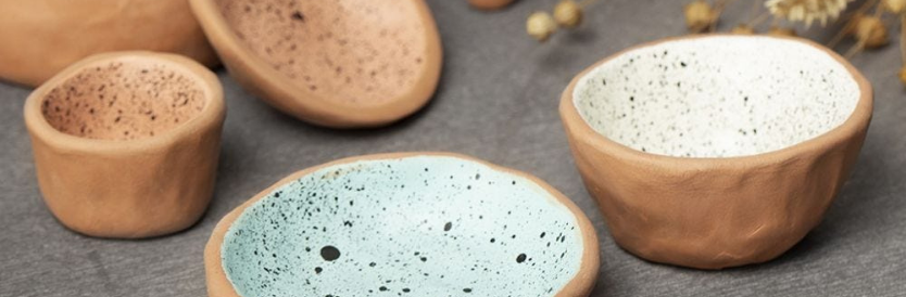 Kopjes, bakjes, vazen, eierdopjes, je kunt het zo gek niet bedenken of je kunt het maken! Boetseer je gekozen werk, laat het 24 tot 48 uur drogen en verf het.