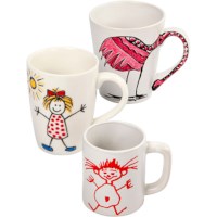 Een compleet pakket met alle benodigdheden om met 48 kinderen een mok te decoreren.