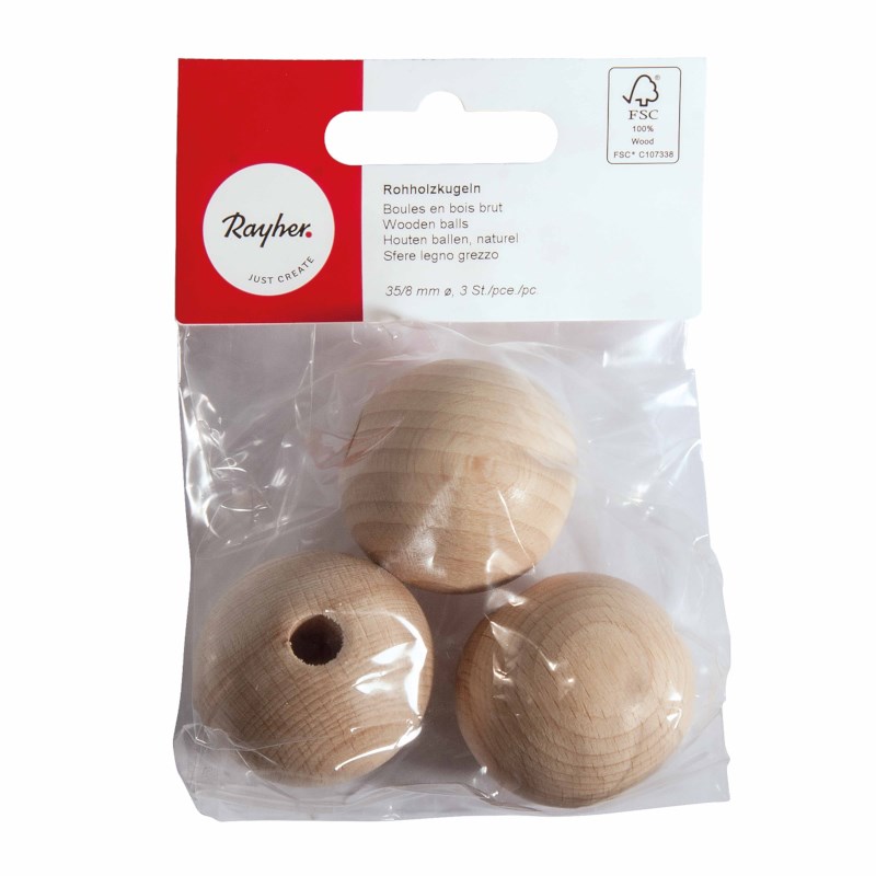 Kralen hout | Rayher | Naturel | Ø 35 mm | 3 stuks