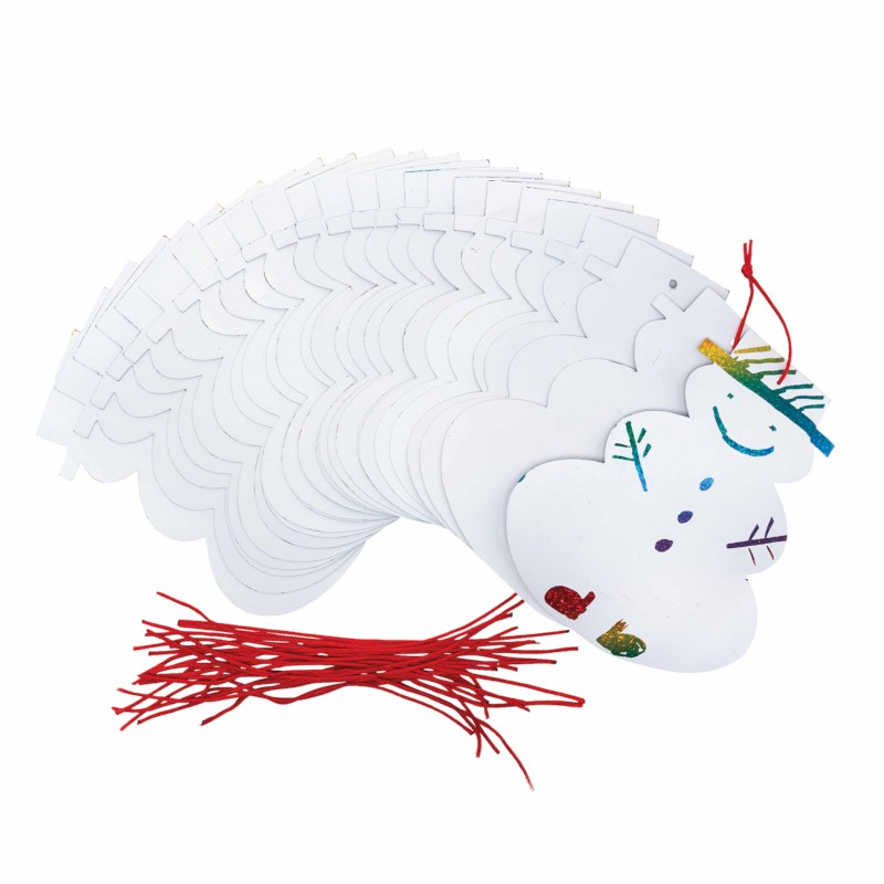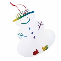Pakket met 20 witten sneeuwmannen. Door met een kraspen/naald met stompe punt de bovenlaag weg te krassen tover je glitterende regenboogkleuren te voorschijn.