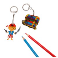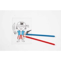 Je kunt de glanzende kant van het krimpfolie inkleuren met permanente viltstiften en de matte kant met kleurpotloden. Na het kleuren knip je het figuur uit en kun je deze in een gewone huishoudoven op 170 graden laten krimpen. Leg even een zwaar boek of iets dergelijks op je figuur zodra je hem uit de oven haalt, om deze weer plat te laten worden. Mocht je een sleutelhanger willen maken, dan kun je met een perforator een gaatje in het folie ponsen voordat je het in de oven doet.
