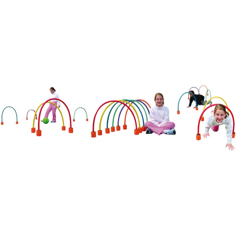 Flexibele poortjes waar kinderen onderdoor kunnen kruipen of waar zij de bal doorheen kunnen schoppen. De uiteinden van de poortjes zijn verzwaard zodat ze stevig blijven staan. Inhoud: 6 flexibele poortjes.