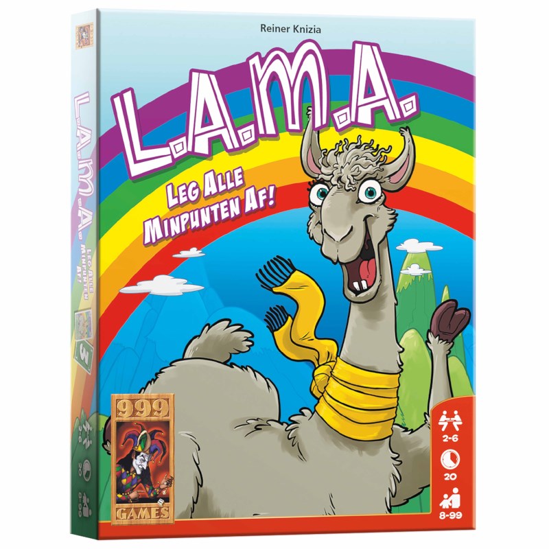 Het motto van L.A.M.A. is: Leg Alle Minpunten Af. Elke beurt probeer je kaarten af te leggen, anders krijg je er minpunten voor. Kun je niets afleggen, dan beslis je om te passen of een (hopelijk goede) kaart te trekken. Je krijgt minpunten in de vorm van fiches. Lukt het je om al je kaarten kwijt te raken, dan mag je een fiche teruggeven. En dat mag er één van waarde 1 of van waarde 10 zijn. Aan het einde wint de speler met de minste minpunten! L.A.M.A. is een grappig en toegankelijk kaartspel met zeer eenvoudige spelregels!