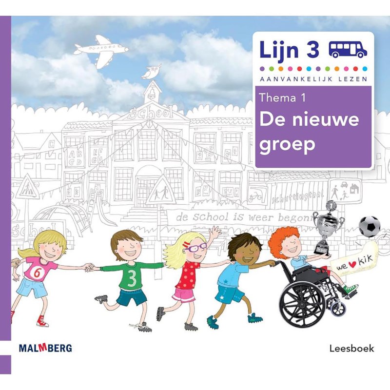 Leesboek bij thema 1 van Lijn 3 De nieuwe groep. Elk kind leest bij Lijn 3 in een eigen leesboek met een unieke dubbele leeslijn. Iedereen leest hetzelfde verhaal uit hetzelfde boek, maar wel op zijn eigen leesniveau. In de gekleurde achtergrond staat telkens de tekst op het moeilijkere niveau voor de goede lezer. In elk leesboek staan enkele samenleesverhalen. Daarbij wisselt het leesniveau binnen het verhaal en kan je samen met je kind afstemmen wie welke rol neemt.