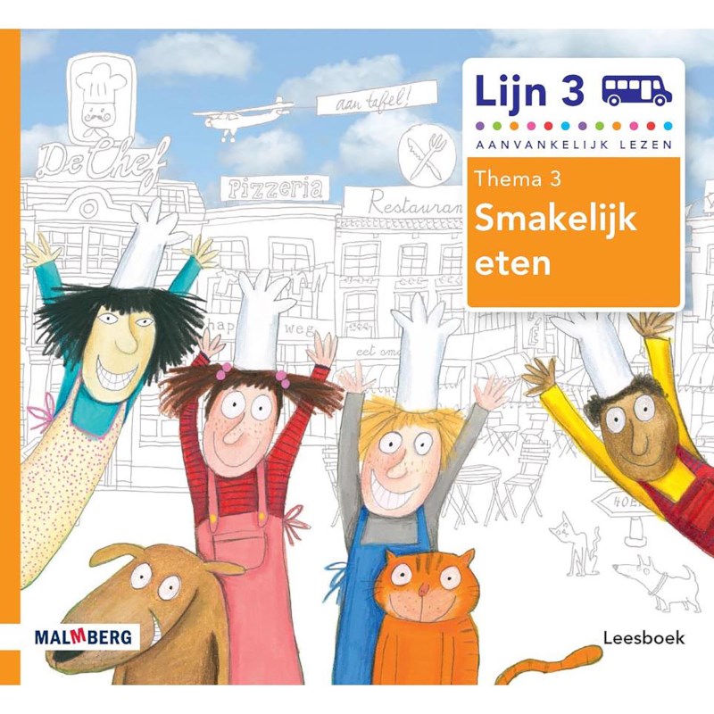 Leesboek bij thema 3 van Lijn 3 Smakelijk eten. Elk kind leest bij Lijn 3 in een eigen leesboek met een unieke dubbele leeslijn. Iedereen leest hetzelfde verhaal uit hetzelfde boek, maar wel op zijn eigen leesniveau. In de gekleurde achtergrond staat telkens de tekst op het moeilijkere niveau voor de goede lezer. In elk leesboek staan enkele samenleesverhalen. Daarbij wisselt het leesniveau binnen het verhaal en kan je samen met je kind afstemmen wie welke rol neemt.