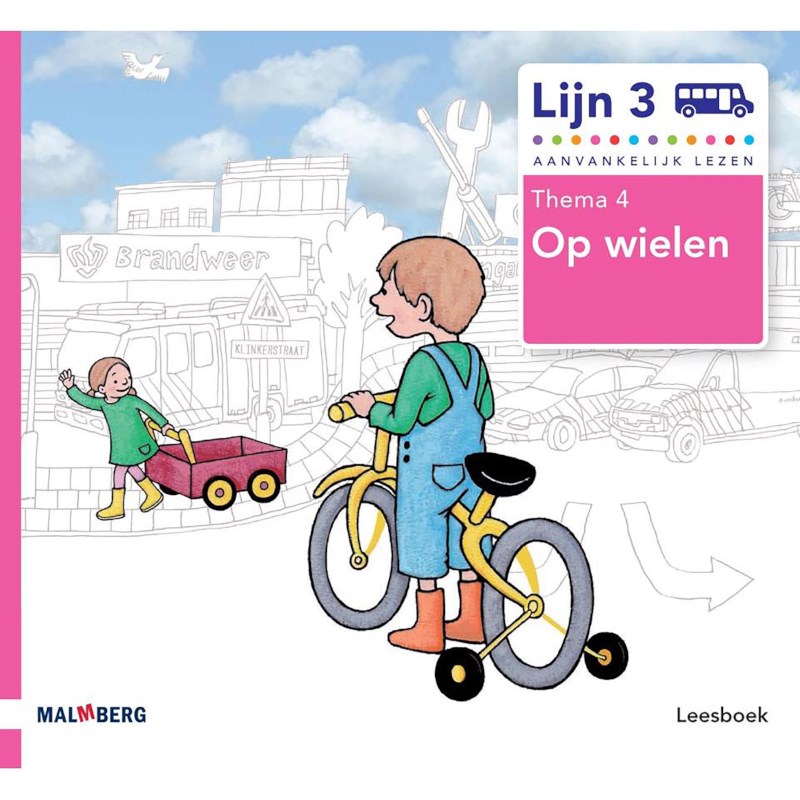 Leesboek bij thema 4 van Lijn 3 Op wielen. Elk kind leest bij Lijn 3 in een eigen leesboek met een unieke dubbele leeslijn. Iedereen leest hetzelfde verhaal uit hetzelfde boek, maar wel op zijn eigen leesniveau. In de gekleurde achtergrond staat telkens de tekst op het moeilijkere niveau voor de goede lezer. In elk leesboek staan enkele samenleesverhalen. Daarbij wisselt het leesniveau binnen het verhaal en kan je samen met je kind afstemmen wie welke rol neemt.