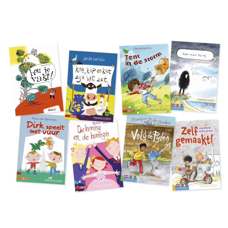 Pakket leesboeken Toneellezen voor groep 3 - geschreven op AVI M3-E3 - bestaat uit 8 delen: