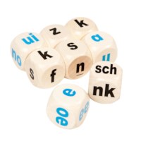 Gooi de dobbelstenen en luister naar klanken. Vorm woorden met klinkers, medeklinkers en tweeklanken en ontdek klankstructuren.