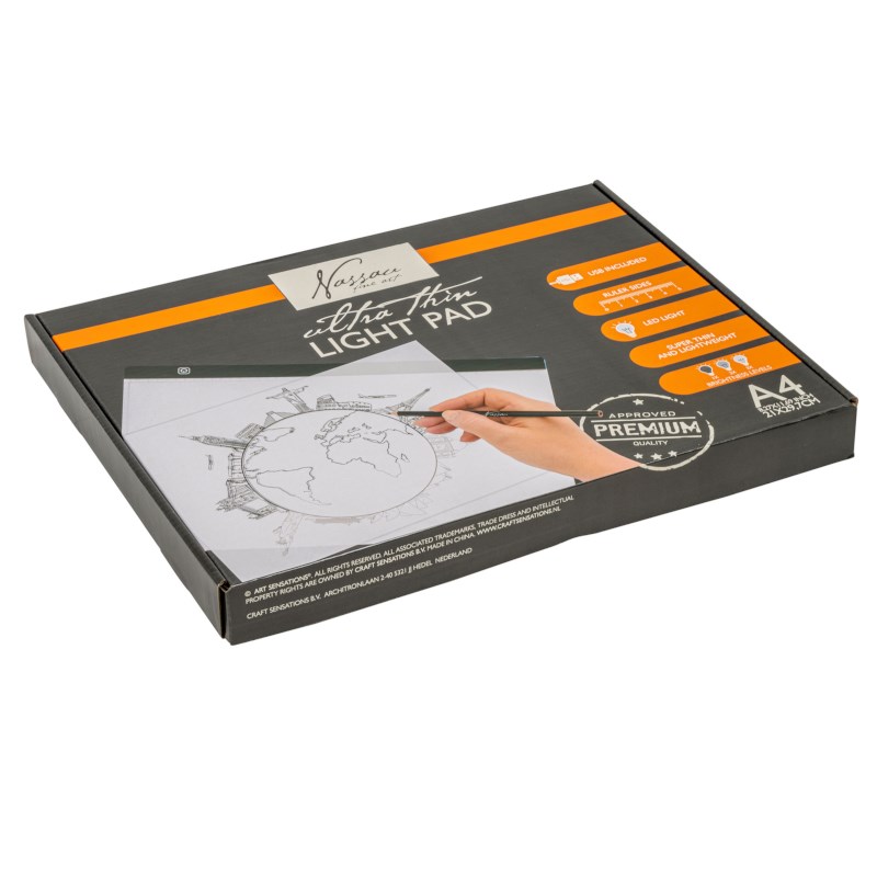 Deze dunne en lichte lightpad is voorzien van een USB-aansluiting met stekker. Dit kan dus zowel op het stroomnetwerk als op een device met USB-aansluiting worden aangesloten.