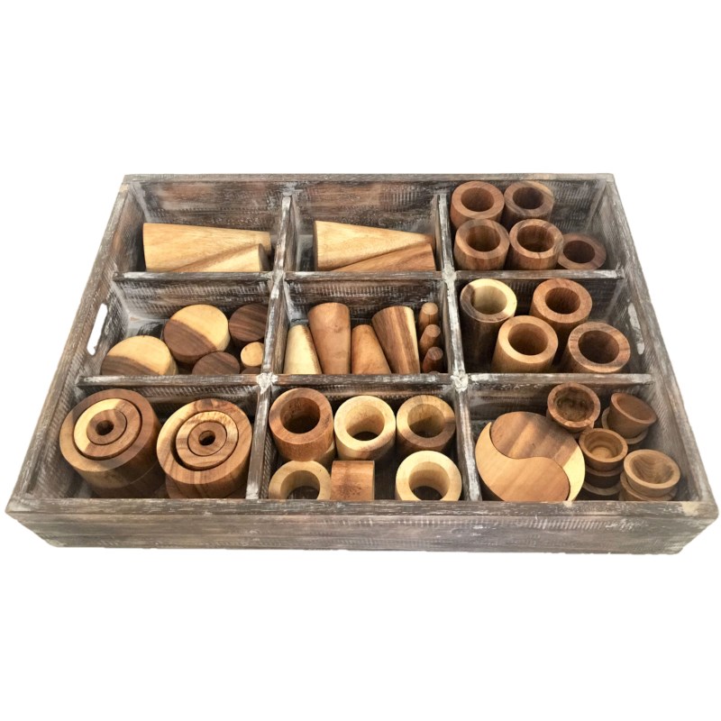 Open ended play of vrij spel is een vorm van spelen zonder echt doel. Kinderen ontdekken op deze manier hun eigen spel waarin ze fantasie de vrije loop kunnen laten gaan. De Loose parts set ondersteunt deze manier van spelen. De mogelijkheden zijn eindeloos: bouwen, stapelen, sorteren, rekenen.
