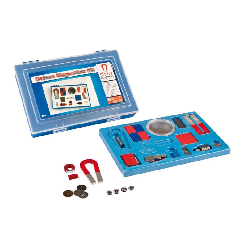 In deze stevige opbergkoffer zitten allerlei magneten voor lesactiviteiten over magnetisme. Bevat schijfjes van verschillende metalen, ijzerpoeder en diverse soorten magneten, zoals staaf-, schijf- en hoefijzermagneten.