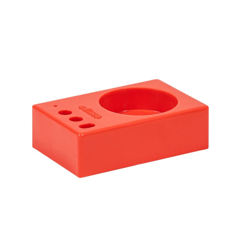 Voor het opbergen van 1 plak- of verfpotje en voor het opbergen van b.v. kleefkwastje, penseel, potlood, schaartje of prikpen.