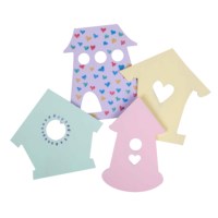 U krijgt geleverd: 1 folie met 4 modellen MDF vogelhuisjes