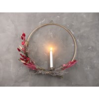 Lees meerDe gouden ring op voet is een goede basis voor het maken van een winterscène of kerststuk. Door het houten plateau heb je genoeg ruimte om een mooi kerststuk te maken. De gouden ring geeft je de ruimte om het geheel af te maken met hangende decoratie.