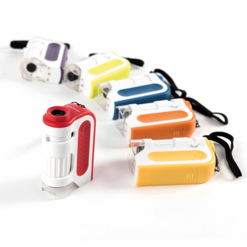Een set van 6 mini microscopen in 6 verschillende kleuren met een LED-lampje die zorgt voor een helder en scherp beeld. Door het formaat zijn deze mini microscopen eenvoudig mee te nemen bij tripjes naar het bos of in de tuin. Dankzij de 120x vergroting en geïntegreerde LED-lamp kan men de kleinste details zien die niet met het blote oog zijn waar te nemen. Werkt op 1 AA-batterij (niet inbegrepen).