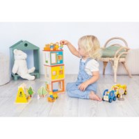 Ontdek het leven in de stad met deze speelset. De set bevat een huis, een bus, een speeltuin en nog veel meer items die in de stad thuis horen. Vergroot de woordenschat.