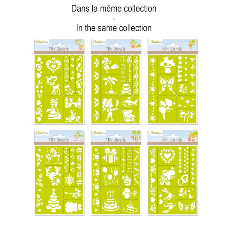 U krijgt geleverd: zakje met 10 mini sjablonen met prinses, kikker, kasteel, hertje, hart, bloem en 4 sierranden
