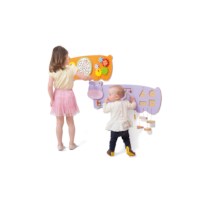 Het motoriekbord is voorzien van verschillende spelletjes: een klein telraam, een magnetisch doolhof met een pen aan een touwtje en een vormsorteerder met 4 blokken met een magneet bevestiging. Hiermee wordt op speelse wijze al gestart met het oefenen van de schrijfmotoriek, het ruimtelijke inzicht en het concentratievermogen.