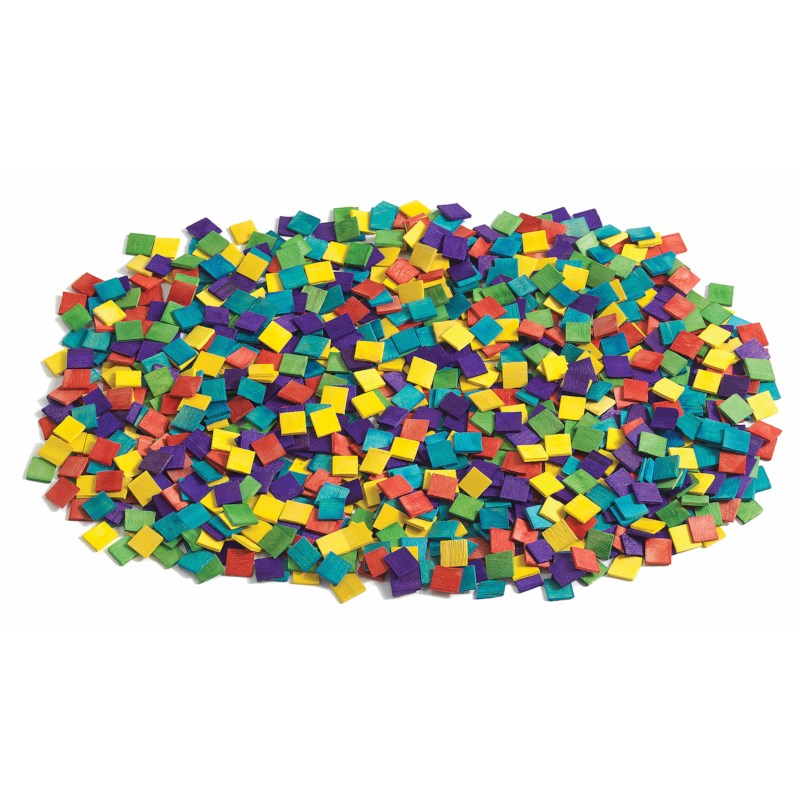 Spaanmozaiek, dunne spaanblokjes van 1.3 x 1.3 cm.