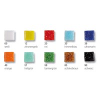 Doosje met glas steentjes geschikt om een mozaïek werkstuk mee te maken. Leuk om een fotolijstje, onderzetter, tafelblad of een ander kunstwerk mee te maken.