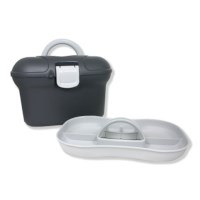 Een naaidoos met uitneembare vakje en opbergmogelijkheden voor naaigerei.