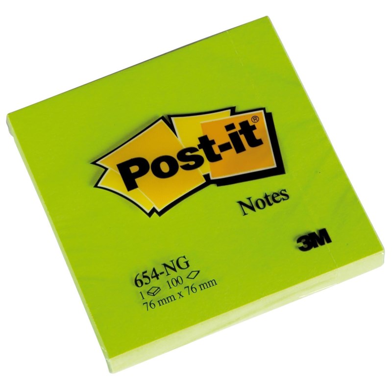 Zelklevende notitieblaadjes van Post-it in de kleur groen. Blok met 100 vel. Afmeting: 76 x 76 cm (l x b).