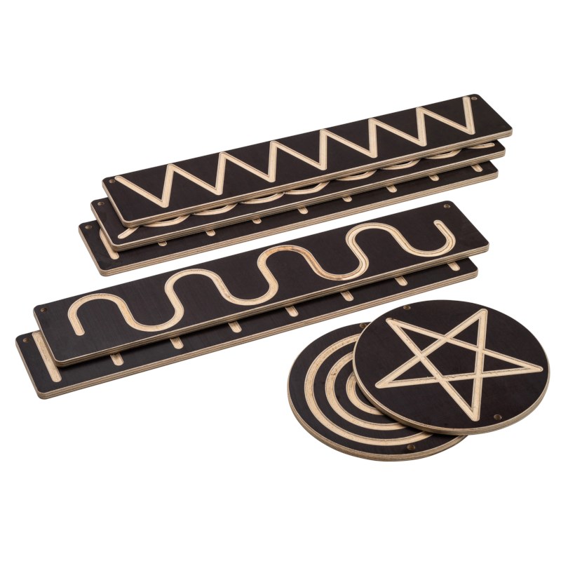 - inhoud: 5 rechthoekige borden en 2 cirkels