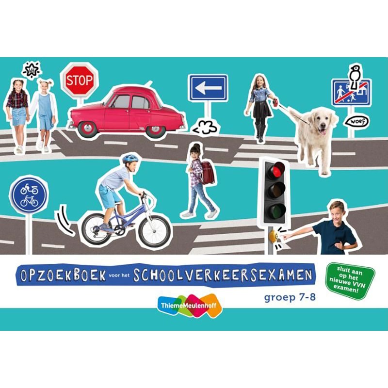 Opzoekboek van Oefeningen voor het schoolverkeersexamen. Hierin staat de theorie uitgebreid toegelicht voor kinderen in groep 7 en 8. In het werkboek staan icoontjes met verwijzingen naar pagina's uit het Opzoekboek waarin de bijbehorende uitleg staat.