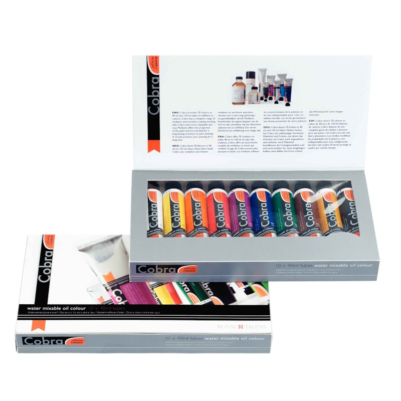 Deze handige set bevat 10 verschillende kleuren van Cobra Artist olieverf.