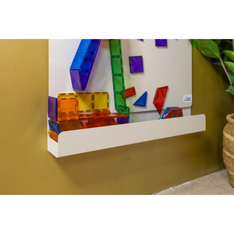 Opbergbak van 80 cm breed dat je onder het magneetbord (apart verkrijgbaar) aan de muur kunt bevestigen. Handig voor het opbergen van magnetische speelelementen, zoals tegels, cijfers en letters. De hoeken hebben gaatjes zodat stof en vuil zich niet ophopen, waardoor het makkelijk schoon te maken is.