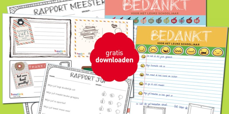 Het einde van het schooljaar komt in zicht. Veel ouders en kinderen vinden het leuk om de meester of juf een bedankje te geven als afscheid van het schooljaar. Waar je de leerkracht echt blij mee maakt? Met een persoonlijk kaartje, briefje of cadeautje. Gebruik onze gratis downloads om de leerkracht op jouw eigen wijze in het zonnetje te zetten.