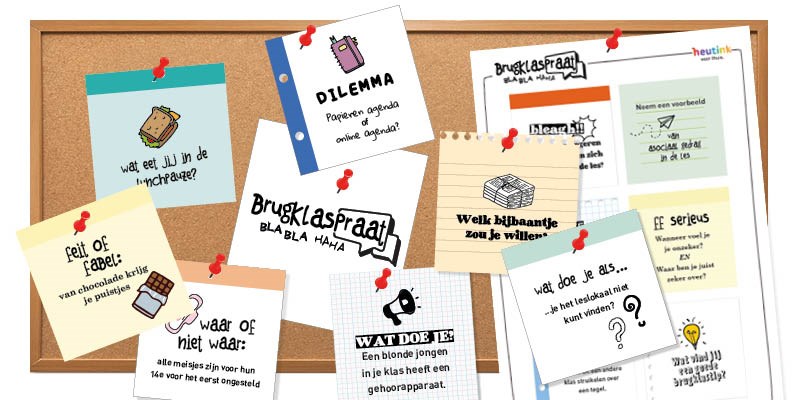 Speciaal voor kinderen die naar de brugklas gaan heeft Heutink voor thuis een cadeautje: Brugklaspraat. Een gezellig spel met 100 prikkelende vragen over de middelbare school. Om samen met vriend(inn)en of gezinsleden te kletsen over deze spannende en leuke nieuwe stap.