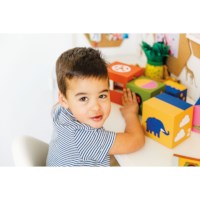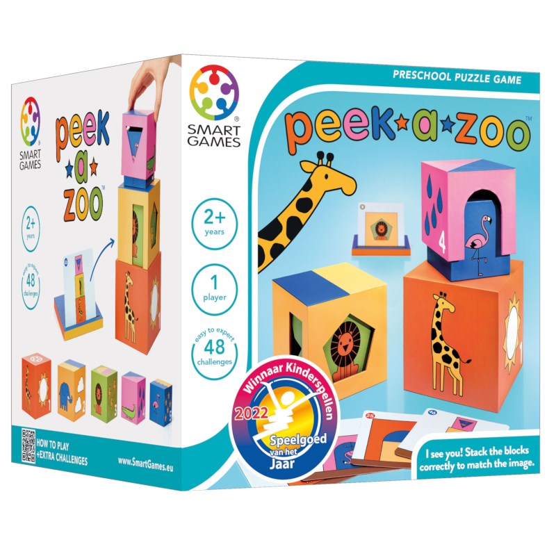 Kan jij de verstopte dierentuindieren vinden? Kies een opdracht en probeer de blokken te stapelen zoals op de speelkaart. Oefen taal en leer over kleuren, dieren en ruimtelijke inzicht.