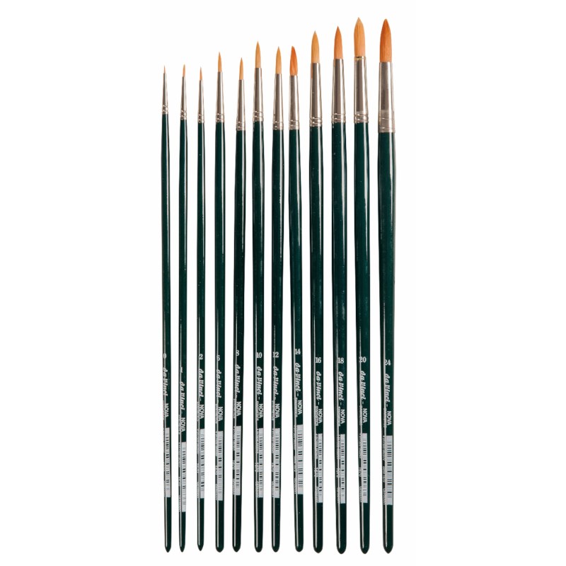 Nova synthetisch Filament Serie 1670 rond, lange steel. Goudkleurig, zeer veerkrachtig filament met een mooie punt. Geschikt voor elke techniek.