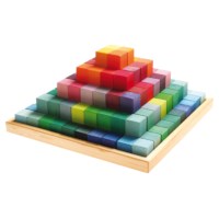 De piramide is de grootste en meest uitgebreide set blokken van Grimm's in heldere kleuren. De basismaat van de blokken is 4 cm, wat maakt dat je de deze blokken goed kan combineren met andere sets van Grimm's. De afmeting van het legbord is 45 x 45 cm (l x b). De piramide is geschikt voor kinderen vanaf 3 jaar.
