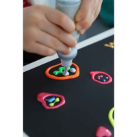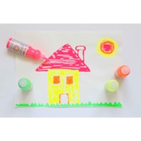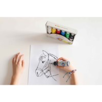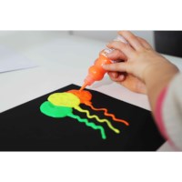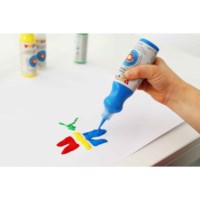 Een set met acht kleuren plakkaatverf in een handige spuitflacon. Door de spuitmond kan er met de flacons bijvoorbeeld ook getekend en geschreven worden.
