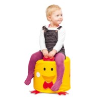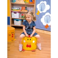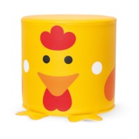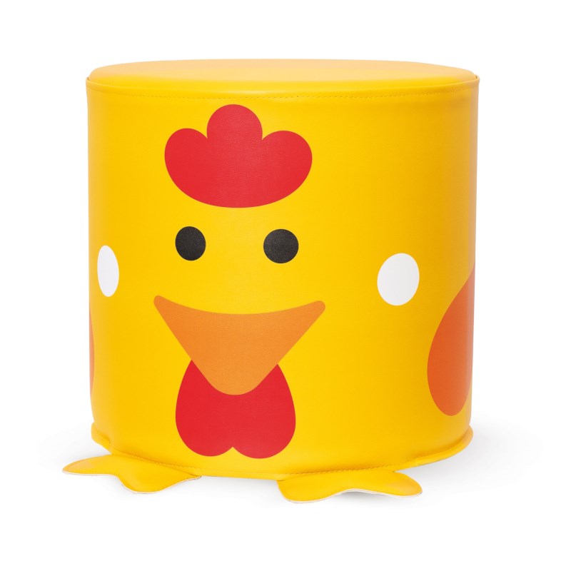 Poef met de afbeelding van een kip en is te gebruiken als poefje, voetenbank of als een mooi bijzettafeltje.
