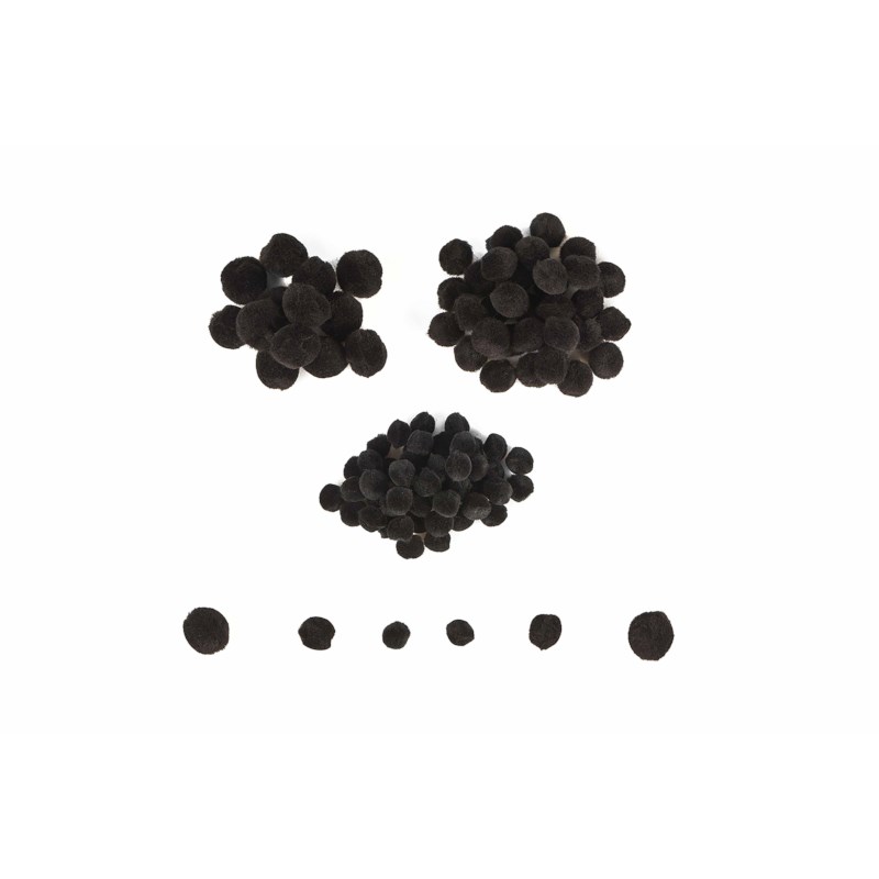 Pompons | Zwart | 20/25/30 mm | 100 stuks