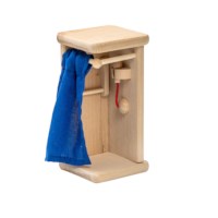 Lekker in bad. Of toch liever onder de douche? In de complete badkamer voor het poppenhuis kan het allebei. Set met met bad, douche en wastafel.