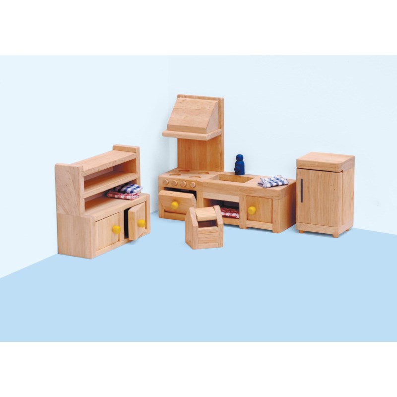 Een keuken is het hart van een huis. Ook in een poppenhuis. Met deze ingerichte keuken kun je koken, opruimen en tafelen in één ruimte.