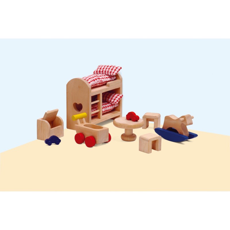 Stapelbed daar en het hobbelpaard daar. Voor je het weet is de kinderkamer ingericht. Een speelse kamer voor het poppenhuis met meubels en accessoires.