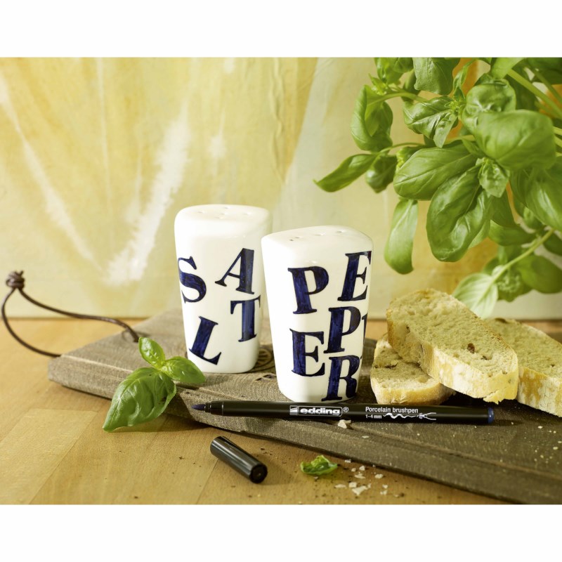 Viltstift met een flexibele penseelpunt voor het decoreren van porselein, geglazuurd keramiek en hittebestendig glas.