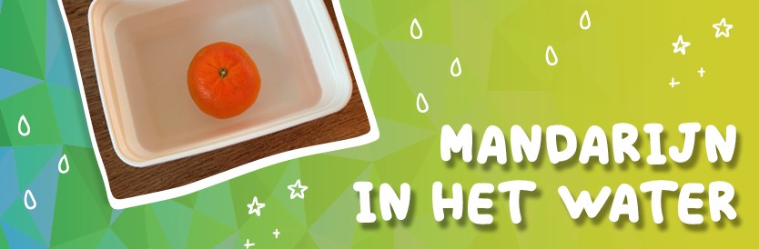 Op het moment dat je de mandarijn met schil in het water legt, blijft deze drijven. Zodra je de mandarijn pelt en een stukje in het water legt, zinkt deze!