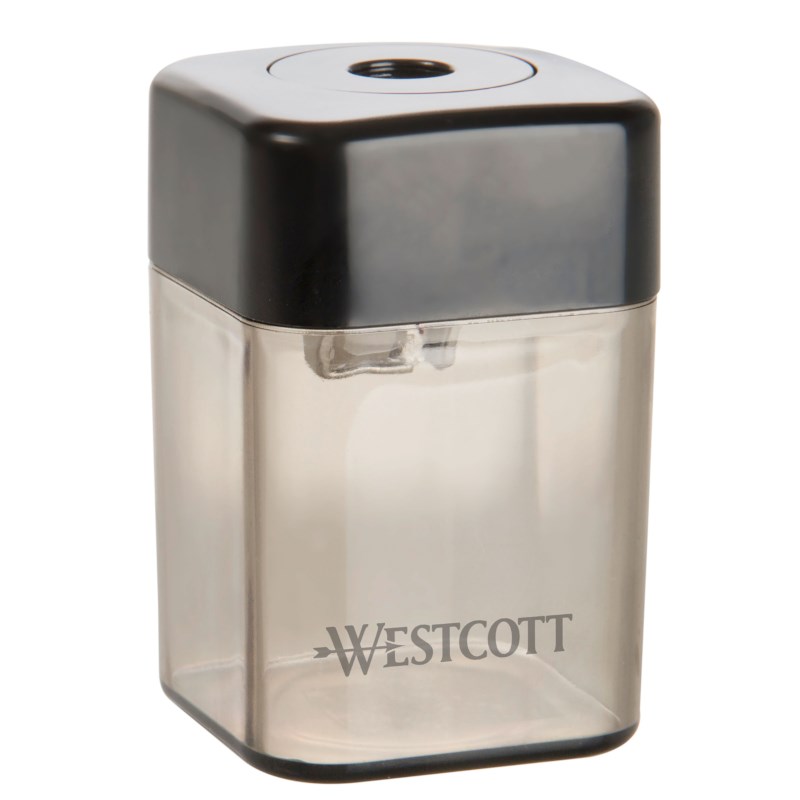 Kunststof puntenslijper / potloodslijper met opvangbak. Geschikt voor zeskantige potloden.