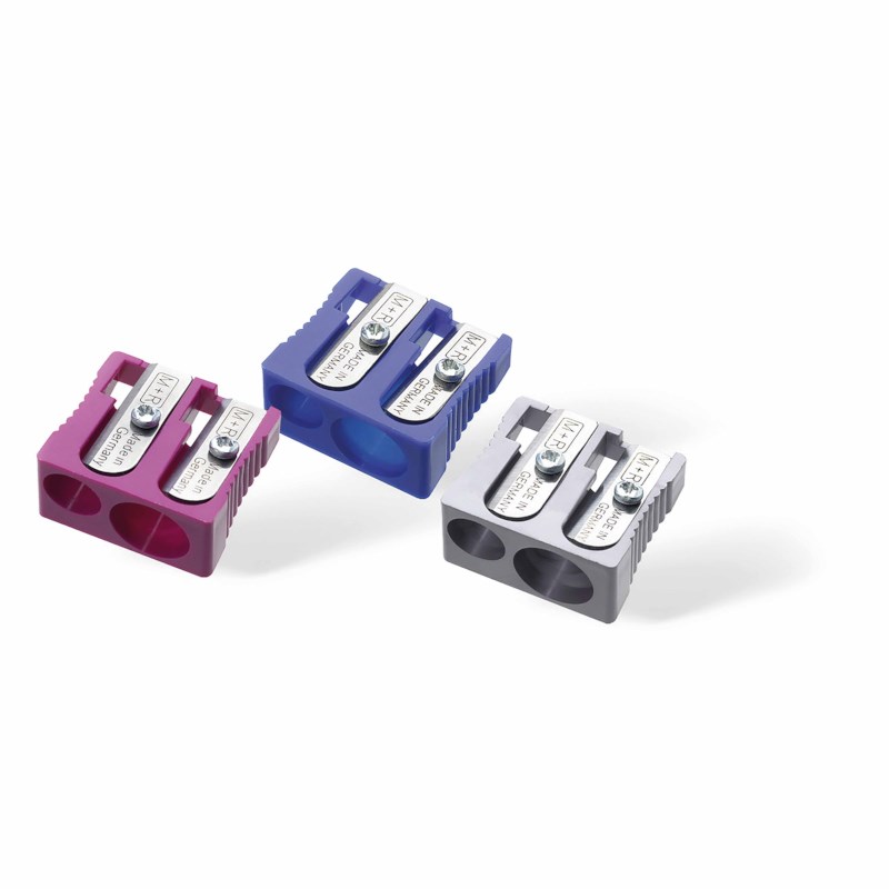 Puntenslijper / potloodslijper met 2 gaten voor het slijpen van potloden en kleurpotloden met de hand.