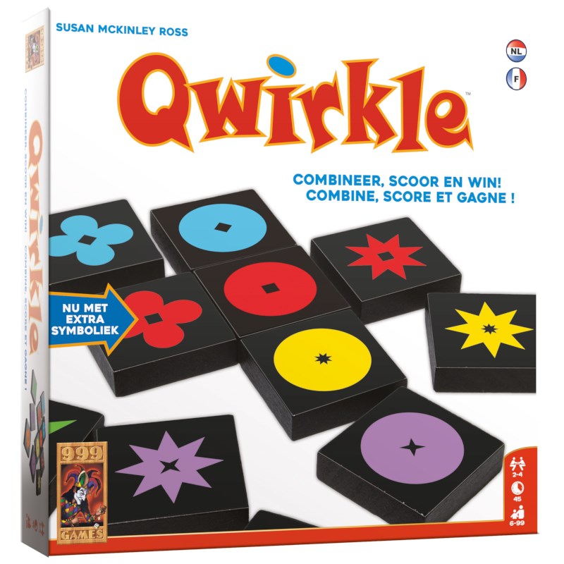 Leg in dit spel tegels met verschillende symbolen of kleuren aan elkaar en scoor punten. Maak je een serie af of beëindig je het spel, dan krijg je bonuspunten. Wie scoort de meeste punten? Qwirkle bevat geen speelbord, maar kan op elk oppervlak worden gespeeld. Aantal spelers: 2-4. Leeftijd: 6-99 jaar. Duur: 45 minuten.